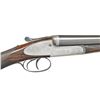 BODIED SIDELOCK EJECTOR GAME GUN W/ TWO SETS OF BARRELS. Cal. 12 Ga. 2 1/2". S# 15364 (mfg. 1895). This fine gun has two sets of 30" chopper lump bbls. One with maker's name and address on narrow game rib has bbl. flats stamped w/ original London black powder proofs, early London nitro reproofs, and later Birmingham reproofs all for 2 1/2" chambers with the Birmingham proofs at 850 BAR & stamped "Lined Barrel" (most likely Teague liners). Serial numbers are on bottoms of bbls. & bbl. maker's initials "WH" (Bill Hill) are on bottom of left bbl. Tube numbers "16141" & "16142" are on loop. The second set of newly made bbls. have rib engraved "2" and with scroll; matching the number "2" on the first set of bbls, top lever and forend iron. These newer bbls. are stamped with 1991 London nitro proofs for 2 1/2" chambers. Serial number is on bottom of right bbl. Coin finished rnd. bodied sidelock action features automatic safety ("SAFE" inlaid in gold), bushed strikers, engraved arrow tumbler end cocking indicators & dbl. triggers. Action is engraved w/ near full coverage Purdey "house" style rose & scroll featuring very small well cut scroll & nicely detailed rose bouquets. "J. Purdey & Sons" is at the bottom of each lockplate & bottom of action is engraved "PURDEY'S" "PATENT". Blued trigger guard is engraved w/ usual larger open scroll; serial number is on tang. Very attractive, dense, well marbled & lightly figured European walnut straight grip buttstock measures 14 3/4" over checkered wood butt. Action area is correctly rounded. Point pattern checkering w/ mullered borders is at grip. A vacant gold oval is on toeline. Splinter Wem ejector forend has unusual flat Anson release button. Iron is engraved "Patent" "2" & is stamped w/  actioner's initials "S.P" (Sol Prentice). MEASUREMENTS: ORIGINAL LINED  BBLS: Bore Diameter: R .714", L .714". Restriction: R .003" (IC), L .011" (Light MOD). Min. Wall Thickness: R .030", L .027". STOCK: DAH: 2 11/16". DAC: 1 1/2"+. LOP: 14 3/4". CAST: approx. 1/2" off. WEIGHT: 7 lb. 2 oz. NEWLY MADE BBLS: Bore Diameter: R .727", L .727". Restrictions R .008" (IC), L .008". Min. Wall Thickness: R .031", L. 031". STOCK: DAH: 2 13/16". DAC: 1 5/8". WEIGHT: 6 lb. 14 oz. (IC). UNATTACHED ACCESSORIES: additional set of newly made bbls. CONDITION: fine as partially refurbished. Original bbl. set retains over 90% reblue, silvering around muzzles, breech ends & along sharp edges. Replacement bbl. set retains essentially all of it's fine quality London black. Action is cleaned to coin finish, engraving remains clear. Reblued top lever & trigger guard show silvering to about 80% blue. Buttstock retains most of an old oil refinish w/ some scattered marks, checkering w/ considerable wear has not been recut. Forend wood is also refinished & appears that checkering was recut & is quite widely spaced while grip checkering is closely spaced. Bores are bright & shiny. Action is tight. Bbls. are on face. Drop is good although tip of iron has been shortened. Ejectors are strong and in time. An attractive, good handling gun. A new set of best quality London made bbls. presently cost over $15,000. (01-20907/MGM). ANTIQUE. $9,000-14,000.