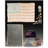 This lot includes 1 large 16 1/4" x 11 1/2" copy of Harper's Pictorial History of the Civil War in rough condition, 1 WWI M1917 US helmet having a yellow "6" within a "C" painted on the front complete with chinstrap but no liner, 1 Faded US 38 star flag measuring 23" x 16", 1 leather clip pouch for a pistol, 1 Leg mounted pilot's metal clip board stenciled "SYNTHETIC TRAINER BRANCH SER. NO. 11", 1 Leather US M1904 pistol box with embossed "US" on the front, 1 Compass marked "LEUPOLD & STEVENS INSTURMENTS PORTLAND, OREGON, 1 Air Force security police badge #E6291, 1 FBI academy belt buckle, 2 US DIs, 2 US collar disks, 1 Dog tag, 1 Trench art letter opener, and 3 Pieces of militaria. CONDITION: all item show light wear unless otherwise noted. (02-25329/BF). NON-GUN. $200-400.