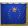 3’ x 4’ double applique embroidered on blue field, 13 stars and eagle in cloud motif, circa 1960s. While lacking a central device to be placed within the stars, it would seem this is an unfinished U.S. Air Force flag. However, it is not an unfinished USAF color, but rather an unfinished unit color for a specific, and unknown, unit. This is likely the result of a unit being formed but no arms yet assigned to them for their flag. The USAF likely inherited this practice from the US Army, who likewise would issue colors without arms.