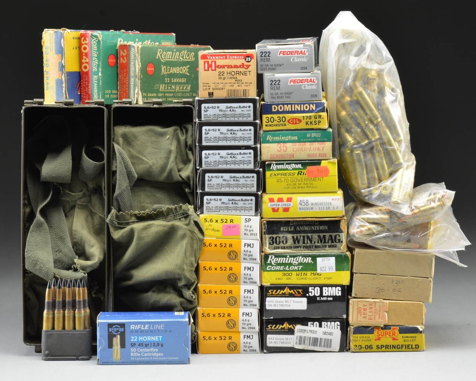 30-06 (3 BOXES, 2 AMMO CANS): 15+ RDs. 110 gr. SP. / 30+ Rds. Lake City M2 ball. / 240+ Rds. in 2 ammo cans of military ball in Garand clips & bandoliers.
