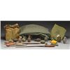LAUNCHER & MORE. This group consists of 15 inert pineapple grenades. / 3 Baseball grenades. / 1 M7 grenade launcher. / 3 Overseas caps. / 1 Riding crop. / 1 Truncheon stick. / 1 Filipino machete. / 1 Homemade bowie knife. / 2 WWII era rifle slings. / 5 Pistol/equipment web belts. / 1 Sam Brown style belt. / 1 Military hand generated flashlight. / 1 WWI era gas mask in pouch. / 1 Pouch for an M9A1 gas mask. / 1 Military tie. / 1 USMC blanket. / 1 Web cotton rifle sling. / 10 WWII era fighting knives & scabbards. / 1 WWII era fighting knife, no scabbard. CONDITION: items generally show moderate wear. Knives show heavy use & some oxidation. (02-14430/BF). $600-900.