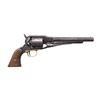 REVOLVER. Cal. 44. S# 11431. Mfg. 1862-1863. Matching numbered 8" oct. barrel. 6 Shot cyl. Brass triggerguard. Two piece walnut grips with outline of cartouche on left side. CONDITION: metal has brown patina appearance with prior cleaning & pitting evident alongside spots of oxidation. Brass shows light cleaning Fair grips have numerous deep marks & worn appearance. Bore shows rifling & pitting. (01-26353/MD). ANTIQUE. $500-800.