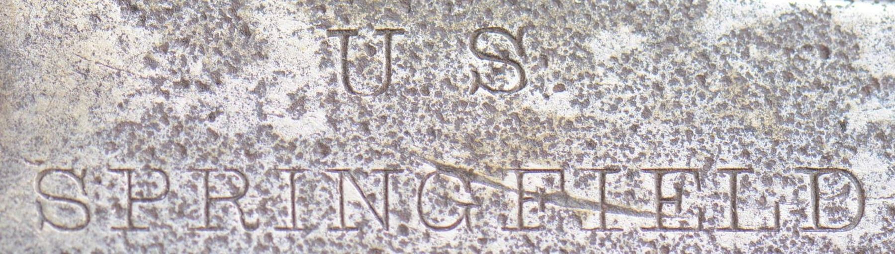 This fine original lock is marked with a large eagle on the door that covers the Maynard tape primer system. In front of the door the lock is marked “U.S. SPRINGFIELD”, and to the rear of the hammer is the date “1859”. The lock is mechanically functional and includes both attachment screws. CONDITION: lock has a somewhat mottled, light gray patina with peppery areas. (02-20148/BF). $200-300.