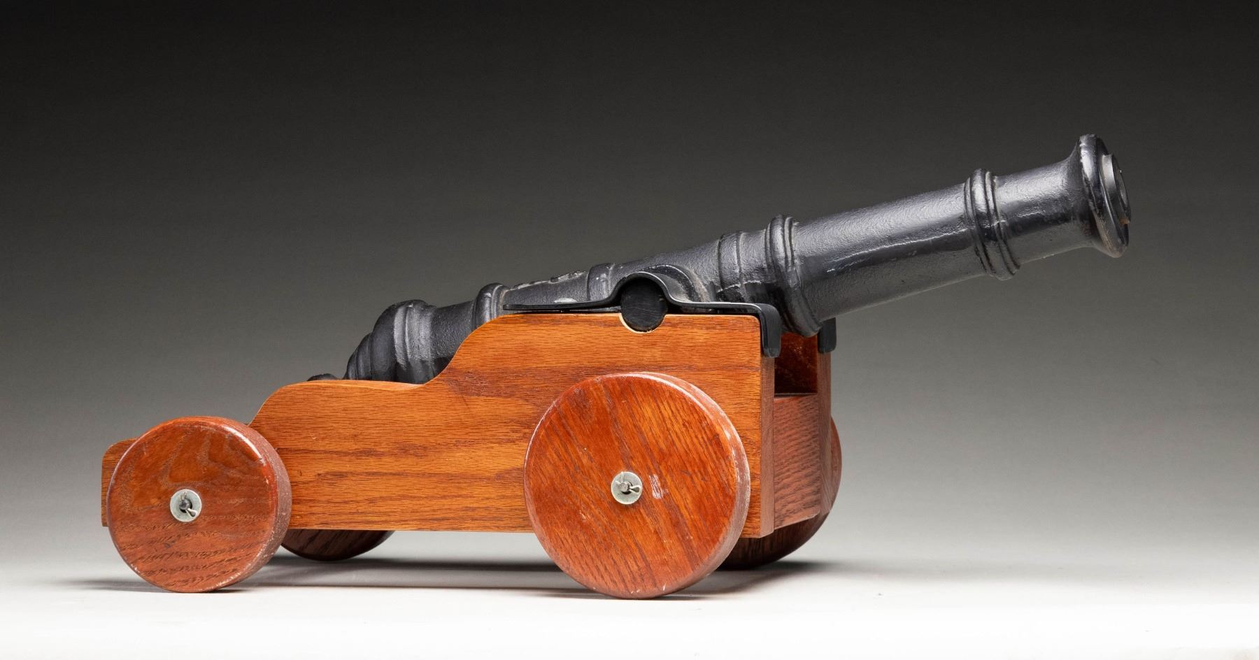 1" bore signal cannon that appears to be a modern creation with "US over (Ordnance Flaming Bomb)" marked tube. Overall length 24" with 21" length tube. Hardwood carriage & wheels with Phillips head screws. CONDITION: cannon tube shows some flaking giving way to oxidation around muzzle, Carriage shows scattered usage wear. Smoothbore shows light oxidation along its length. PROVENANCE: From the Buckstix Collection. (02-26024/MJC). NON-GUN. $1,500-2,500.