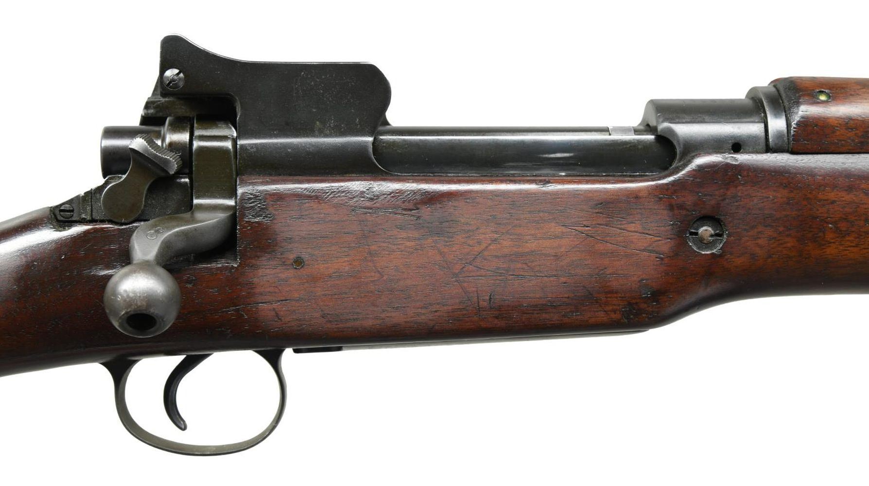 Fair: Little to no original finish, minor or small major parts replaced, light to moderate pitting externally, functional mechanics, fair bore with heavy pitting but visibly rifling. Poor: No original finish, possibly some major parts replaced, loose but functional mechanics, active or heavy external rust, poor bore with heavy pitting and little or no rifling visible.