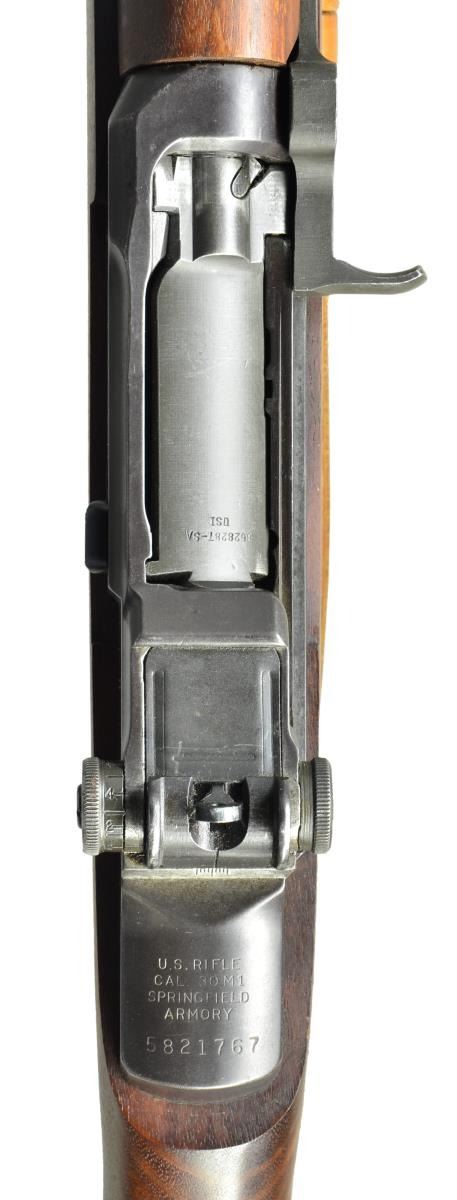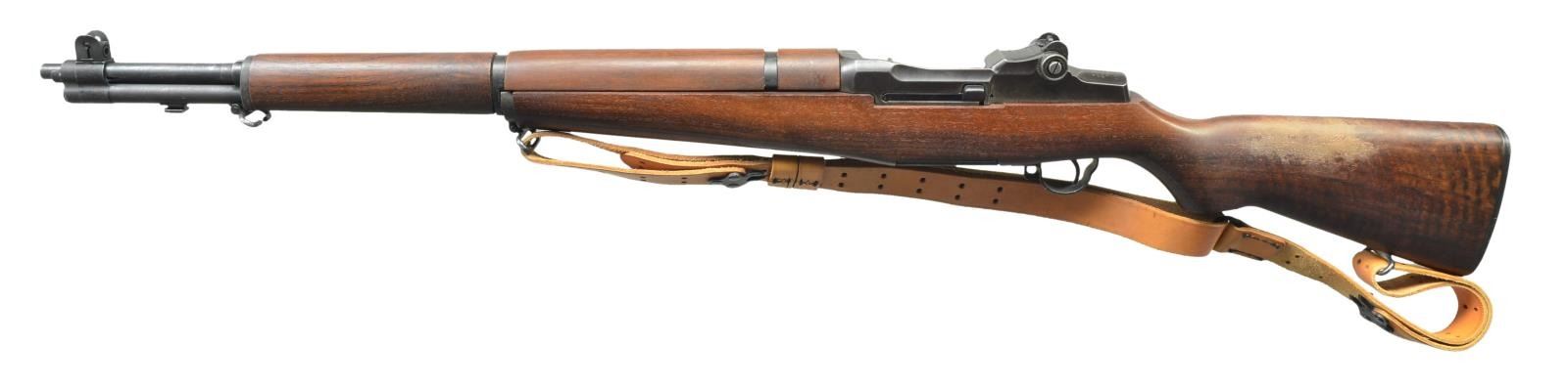 7.62 NATO BY PAKISTAN. Cal. 7.62 NATO. S# 5821767. Bbl. 24". Bbl. has mark on right side "1-S-A-5-43". Additionally stamped in larger format w/ white enhanced letters "7.62 NATO M11". This was done by hand stamping when rifles were converted to 7.62 NATO by Pakistan. The conversion was done using HP White Laboratories type bushing & plastic spacer in mag. well. No visible import marks. Adj. aperture rear sight. Blade front sight w/ protective ears. Cross slot gas cyl. lock screw. All visible parts markings are "SA". Stamped trigger guard. Unmarked replacement walnut stock set. Partially legible inked number in forend channel. Buttstock is not drilled for compartment under trap buttplate. Tan military style sling marked "SPRINGFIELD ARMORY Geneseo IL". CONDITION: stock set has very nice appearance w/ scattered handling marks & area of removed finished in cheek area in left side of butt. Has thinning original parkerized finish w/ light wear & scattered sm. spots of oxidation. Very good shiny bore. (21-4275/RW). CURIO. $1,000-1,500.