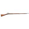 SINGLE SHOT RIFLE. Cal. 50-70. S# 5. Bbl. 40". Rear sight graduated to 700yds. Inverted V front sight. 1866 dated breechblock w/ eagle. Springfield 1864 dated lockplate. Walnut stock w/ three bands. Inspector's cartouche present on left side of stock. No cleaning rod present. CONDITION: stock appears sanded w/ added finish, stock otherwise shows what appears to be a tool mark on the left bottom of butt, scattered dings & handling marks. Metal surfaces are mostly bright appearing cleaned long ago w/ some traces of case colors on breechblock & scattered oxidation. Worn pitted bore. (01-22207/MJC). ANTIQUE. $550-850.