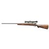 SNIPER RIFLE. Cal. 30-06. S# 3413429. Bbl. 24". Rifle is a model 1903-A4 w/ correct receiver markings. Correct Remington bolt w/ handle configured to clear telescopic sight. Original bbl. marked behind front sight machining cuts "RA" "FLAMING BOMB" "7-43". Front sight was never installed as would be correct for these rifles. Stamped lg. bow Remington trigger guard & fine checkered stamped trap buttplate. Rear swivel is not present. Stock is full pistol grip configuration. Faint markings on left side of stock are "crossed cannons", "FJA". Faint circle P proof under pistol grip. "S" in cuttoff recess. Several acceptance marks are visible forward of trigger guard. Forend has been cut behind lower band. Remainder of forend & bands are not present. Rifle is fitted w/ replacement Redfield 1 piece mt. w/ cardboard shim at receiver ring. Scope rings are blued sporting style & rifle has Weaver K4 60-C blued steel scope w/ standard crosshair. CONDITION: stock has well worn appearance w/ staining, scratches & handling marks w/ faint markings. Receiver bbl. & trigger guard have correct original WWII type parkerizing w/ areas of light wear & thinning. Bbl. has saw scratches around the bottom & side due to the stock cut being done on the assembled rifle. Sight base has turned overall gray & patina. Scope & rings have worn finish w/ scattered areas of fine oxidation & sm. scratches. Objective bell locking ring has lg. missing chip. Optics appear slightly cloudy but serviceable. Very good shiny 2 groove bore. (21-4315/RW). MODERN. $800-1,200.