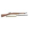 MILITARY RIFLE. Cal. 30-06. S# 3886755. Bbl. 24", marked behind front sight "RA" "flaming bomb" "7-43". Adj. aperture rear sight. Blade front sight. All visible parts marked "R". All stamped furniture including lg. bow trigger guard & fine checkered buttplate. Unmarked replacement walnut stock set w/ 2 recoil bolts. Kerr NOBUCKL sling. UNATTACHED ACCESSORIES: 16" fullered blade bayonet marked on left ricasso w/ "SA" "flaming bomb" "1912". Marked on right ricasso w/ "US" & S#. Coarse turned walnut grips. Green plastic scabbard marked "USN" "MK1". Bayonet has light wear on parkerized blade. Grips have light wear & staining. Balance of metal turning gray w/ patina. Lightly worn scabbard appears serviceable. CONDITION: stock set has light wear & scattered handling marks w/ lightly worn original finish. Metal has original greenish parkerized finish w/ light wear. Stamped parts retain 75% original worn thinning blue. Very good shiny 2 groove bore. (22-1937/RW). CURIO. $500-750.