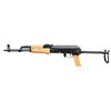 Cal. 7.62x39. S# SL02594. Bbl. 16". A popular Hungarian mfg. AK-47 variant. Under folding stock design. Stamped receiver w/ 1" dimples above mag. well. Dark black painted finish w/ attractive blonde hardwood furniture. Threaded muzzle w/ correct slanted muzzle brake. Bayonet lug hosts cleaning rod which continues into forend. Protected post elevation adj. front sight w/ rear tangent sight marked out to 1000m. Right side controls. Left side mounted sling swivels. CONDITION: coverage on exposed metal surfaces is complete & consistent w/ gentle thinning only between the mechanical relationship w/ the safety & receiver which is inevitable. All outward appearances indicate very little use if any. Bright bore w/ strong rifling. Fire control mechanism appears to function correctly when cycled by hand. (24-4827/JZ). MODERN.$600-900.