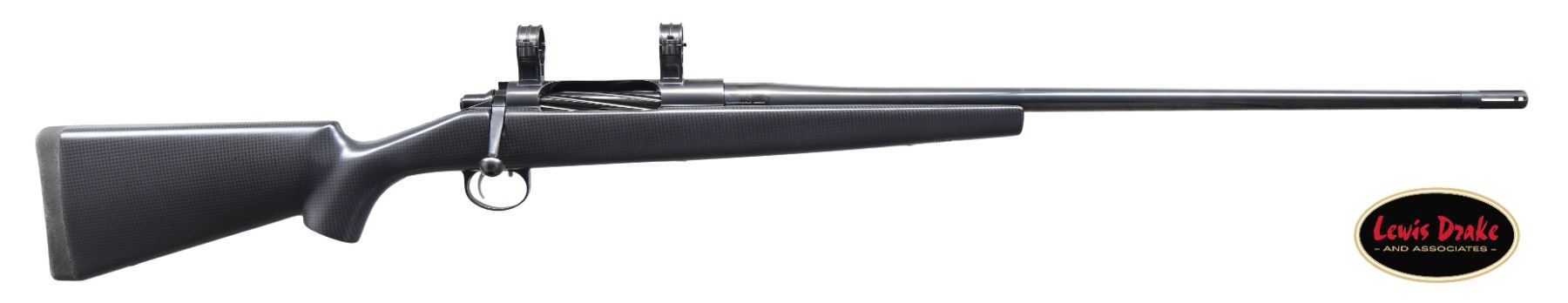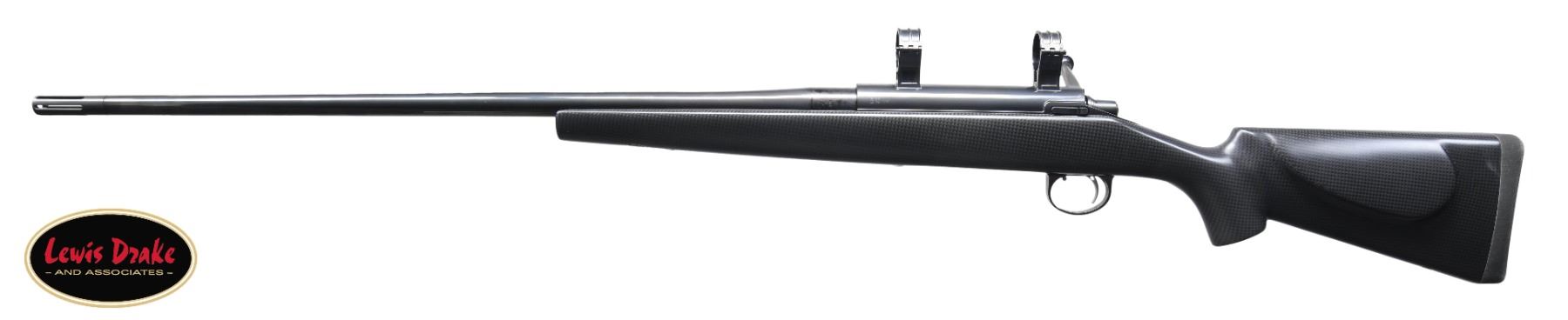ACTION RIFLE. Cal. 300 Win Mag. S# 011. Kekki was an Italian builder of unique custom rifles and offered a large variety of features & finishes. Mfg. 2013-2018, imported by Lewis Drake & Associates of Murray KY until 2015. Bbl. 28" tapered round over patented slotted muzzle brake. 2 lug Titanium action featuring a spiral fluted bolt & integral 30mm scope rings. Blind box mag. w/ solid floorplate, polymer follower is mounted on 2 coil springs. Screw attaches interchangeable bolt knob. Safety lever is located in forward portion of trigger guard. "Bix'n Andy" ball bearing adj. trigger. Carbon fiber cheekpiece stock w/ open threaded bushings for sling swivel attachment. LOP: 14 1/8" over solid black pad. WEIGHT: 9 lbs, 2.6 oz. UNATTACHED ACCESSORIES: 5 high quality Kekki rifle brochures. CONDITION: near excellent retaining over 98% finish. Bright near excellent bore. PROVENANCE: from the renowned collection of quality sporting arms from Lewis Drake together with inventory of Lewis Drake Associates. (24-6594/DS). MODERN. $2,000-3,000.