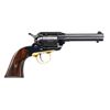Cal. 22 LR. S# 75. Bbl. 4" with side fluted staked blade sight and without "Inc." in legend. Mfg. 1958 (1958-1970; 143,945 units) as BC4 with resin impregnated rosewood grips without medallions. Only these resin grips on early Bearcats were without medallions; all other Ruger handguns past and present have had medallions. After the resin grips, Ruger used walnut with small silver eagle medallions beginning 1964 (just above S#35000); prior Bearcats including those with A-Z letter prefixes (3 digits) had resin grips. Two digit examples will have any combination of fluted (or unfluted) sight blades and capped (or uncapped) base pin latches) as they were subscription guns produced at various dates. Uncapped base pin latch. Standard gold toned anodized alloy trigger guard and steel ejector housing with dimpled ejector rod head. Has had factory safety update performed with transfer bar system and wide spur hammer. CONDITION: very good overall appearance with light hair line cracks in grips; likely from age. Very faint cylinder turn line and light high point wear (mostly in butt area). Near excellent bore. (24-15/NW). CURIO. $1,200-1,800.