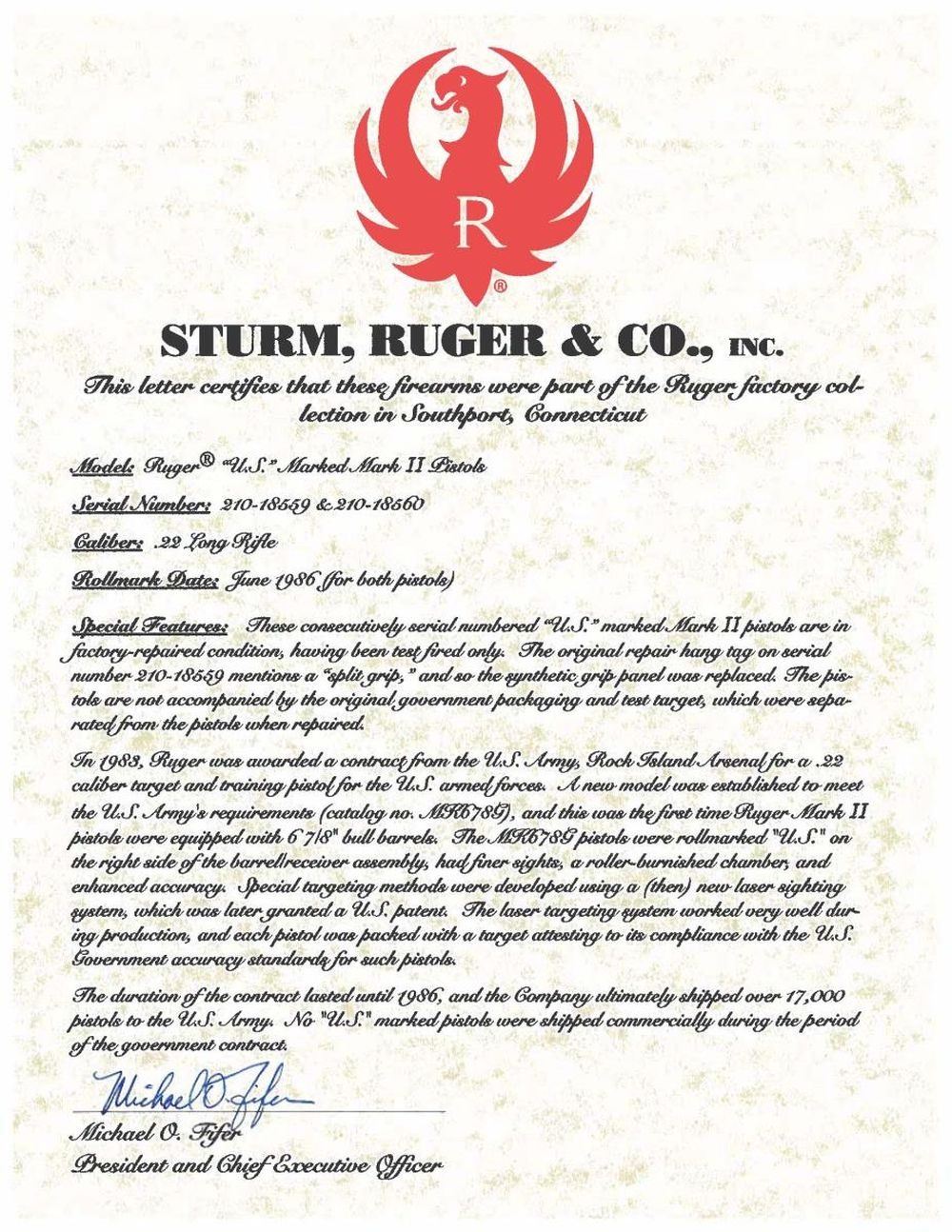 VERY RARE U.S. MARKED RUGER MARK II CONSECUTIVE