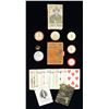 Lot consists of unopened pack of "great mogul" playing cards; leather cased set of playing cards, pocket watch, hours represented by playing cards, ace-queen; and five different 19th century ivory poker chips. CONDITION: good overall, watch back too tight to unscrew to check for maker, and someone had tried to pry it apart in the past, small pry marks present. PROVENANCE: Martin Lane Historic & Western Americana Lifetime Collection. (02-21463/JS). $700-900.