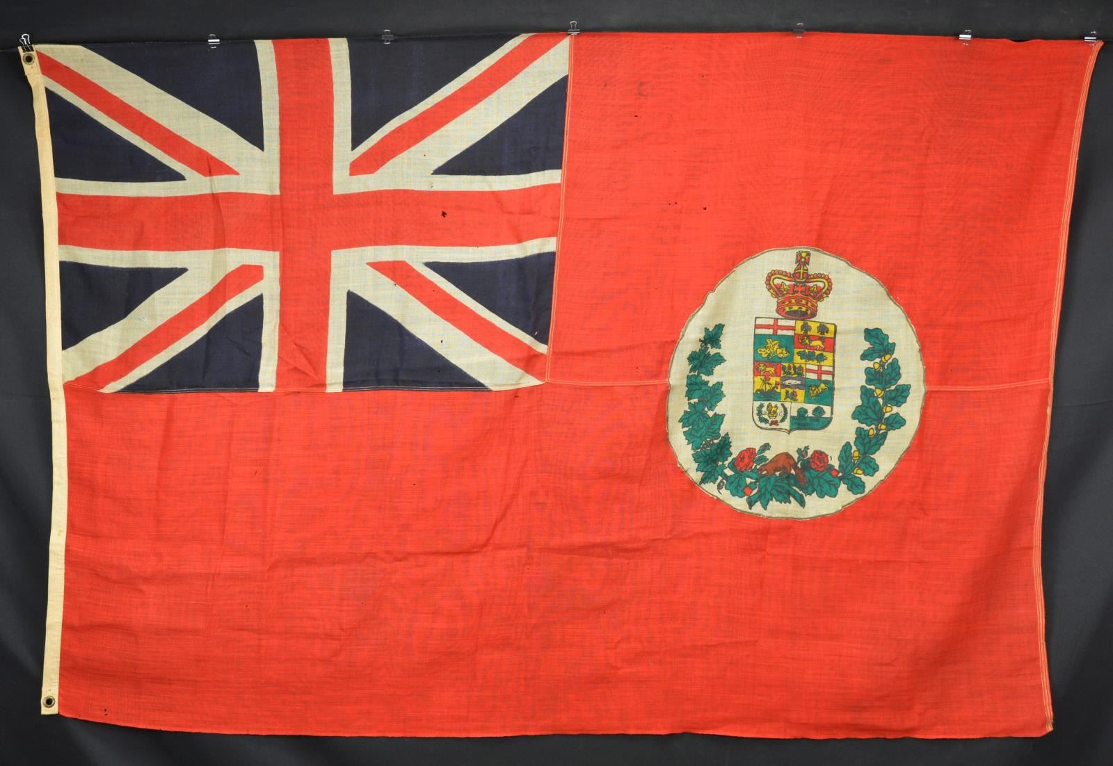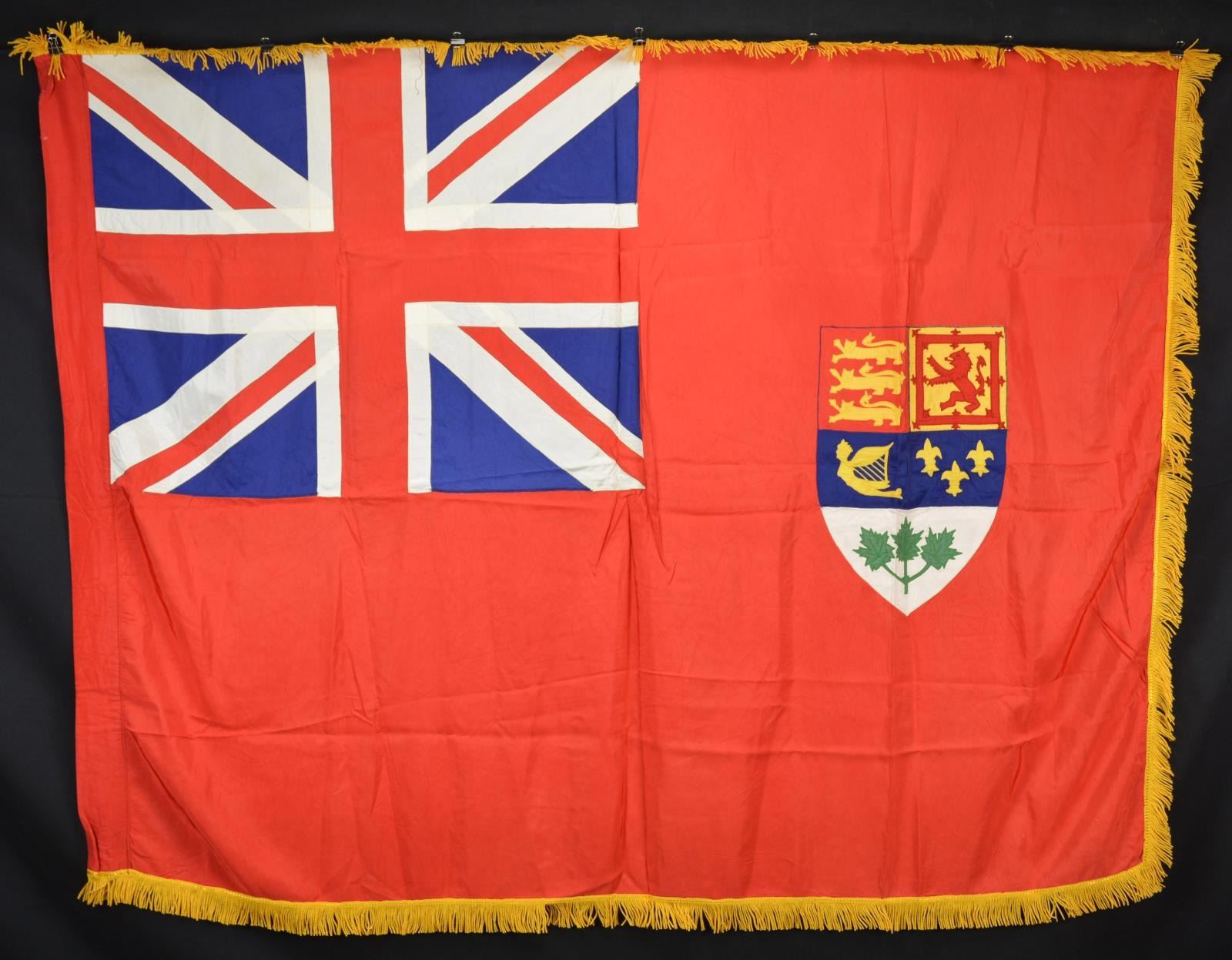 (2&3) two variant Canadian flags, one bunting, one double applique with gold fringe;
