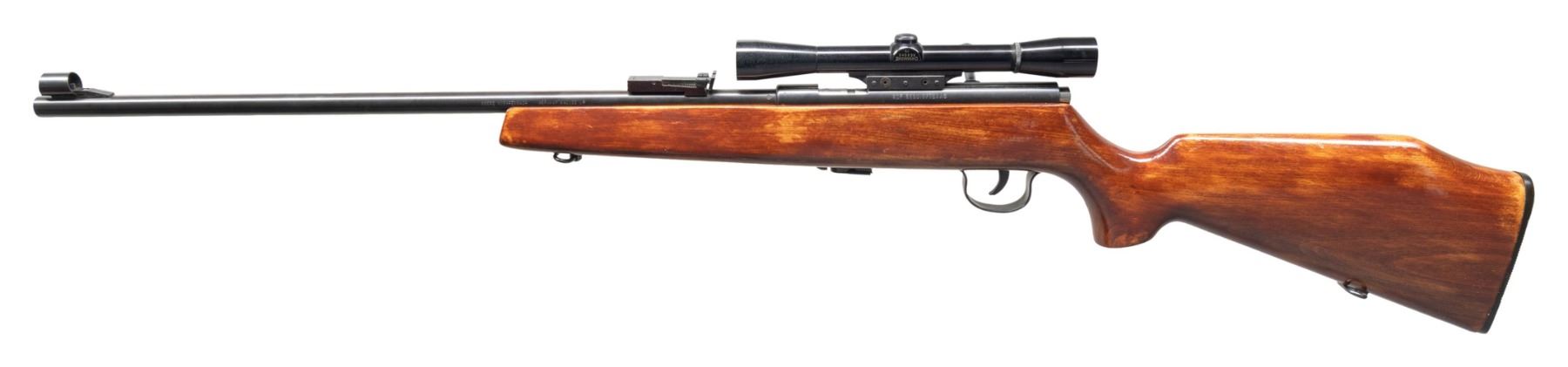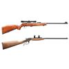 1) KDF / VOERE MODEL 2107 BOLT ACTION. Cal. 22 LR. S# 896496. Mfg. by Voere in Germany & imported by KDF of Seguin, Texas. Bbl. 21.5". Hooded blade front sight & tangent rear sight. Browning 4x crosshair tip-off scope. Hardwood stock. MAGS: 1 - 6 rd. CONDITION: Very good blue. Sanded & refinished stock w/ marks. Very good bore. (25-3596/MD). 2) SAVAGE MODEL 72 CRACKSHOT. Cal. 22 S, L, LR. S# D654183. Oct. 22" bbl. Blade front sight. Weaver rings & tip off base on barrel. Case colored receiver. Walnut stock set. CONDITION: very good overall appearance with marks & oxidation on receiver. Very good bore. (25-3705/MD). ALL MODERN. $350-500.