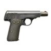 Cal. 7.65mm (32 ACP). S# 53212. Bbl. 3 1/2". Mfg. 1910-1928 w/ "CW" logo checkered hard rubber grips. Unusual feature is ejection port on left side. Crown N proofed on bbl., frame & slide plus additional crown E proof on left side in front of cocking grooves. MAGS: 1 good factory 8 rd. CONDITION: good plus appearance w/ rnd. forward portion of slide having brown patina tone. Scattered peppery oxidation throughout (more even in grip area). Good appearing grips w/ hand wear & repaired chip at bottom rear of left. Very good bore. (22-66/NW). CURIO. $350-500.
