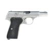 Cal. .25 ACP. S# 51756. Bbl 3 1/8". Reapplied chrome finish w/ 2-piece checkered hard rubber grips. Slide markings have been partially obliterated. Blade front sight with V-notched rear sight. Matching numbers on frame & slide. Magazine is not present. CONDITION: metal components retain the vast majority of their reapplied chrome finish, exhibiting few minor marks from handling & storage. Bore exhibits scattered pitting & good rifling throughout. Grips exhibit scattered marks from handling & storage, but otherwise remain sturdy & serviceable. (23-2064/MLW). CURIO. $200-300.