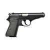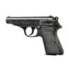 Cal. 22 LR. S# 924555. Bbl. 3 3/4". Mfg. 1936 and “Crown/N” marked on the barrel and slide with “WALTHER” banner marked left side slide. No visible import markings. Blued steel construction with fixed sights, checkered magazine release and serrated hammer. Black “WALTHER” banner checkered plastic grips. MAGS: 1-10 rd. blued unmarked. CONDITION: metal surfaces retain about 80% finish with bulk of loss on the gripstraps along with scattered pinpricks of pitting and light rust. Top right of slide has several pinholes and the metal is exceptionally thin in this area. Appears to be a manufacturing flaw. Grips have scratches, dings and light gouges. Bore is very good, bright and strongly rifled. (22-3437/CW). CURIO. $600-800.
