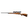 Cal. 300 Wby. Mag. S# H111456. Bbl. 24" without provision for sights. Mfg. in Japan prior to 1992 as indicated by its barrel length (discontinued 1992). South Gate marked action. Highly figured stock having skip line checkering, rosewood accents (forend tip and grip cap with white diamond inlay), Monte Carlo buttstock with ventilated recoil pad, sling studs and white line spacers. Light engraving on hinged floorplate with script "Ron" in center. Redfield scope set having 1 piece base with under screw rings holding classic Lo-Pro Widefield gloss finished scope (duplex reticle). CONDITION: some very minor random marks on stock set; balance is near excellent to include bluing, bore and entire scope set. (23-5317/NW). MODERN. $1,000-1,500.