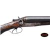 LETTER. Cal. 12 Ga. 2-3/4". S# 219829. Barrels are 24" with cyl. & cyl. chokes. An Ithaca factory letter dated March 29, 1960 states: "according to our records, this is a 12 gauge Ithaca double with 24" barrels. The gun was built by us back in the year 1912, and on March 25 of that year was shipped to the Wells Fargo Express Company for their guarding activities". The 24" barrels with matted rib are unmarked, except for S# on lump. 10 Ga. size boxlock action has exposed hammers. Sides are rolled with Ithaca company dogs, name and address; left side has been engraved "W.F. & CO. EX". S# and gauge are stamped on watertable. Round knob pistol grip American walnut buttstock measures 14-1/8" over replacement Winchester buttplate. Matching splinter forend has "J" spring release. MEASUREMENTS: BBLS: Bore Diameter: L .739. R .739. Restriction: L .000 (cyl). R .000 (cyl). Wall thickness: L .075. R .075. STOCK: DAH: 3". DAC: 1-13/16". CAST: neutral. LOP: 14-1/8". WEIGHT: 9 lb. 8 oz. UNATTACHED ACCESSORIES: Ithaca factory letter. CONDITION: barrels retaining most of their original blue turning to brown. Action retains some case color where protected. There are some heavy scratches on left side partially obscuring Wells Fargo mark. Stocks have old finish. Buttstock with long cracks back to front and a myriad of bumps, scratches and dings. Forend is also cracked (repaired) and has some wood missing toward tip. Bores are bright. Action is tight. Mechanically good. In the words of Sheldon Smith who wrote the factory letter in 1960: "if that gun could talk, it might be able to spin some real hairy yarns, and it certainly has some Americana and gun romance wrapped up in it." PROVENANCE: from the renowned collection of quality sporting arms from Lewis Drake together with inventory of Lewis Drake Associates. (24-6567/MGM). CURIO. $3,000-6,000.