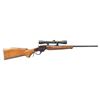 Cal. 223 Rem. S# 01838. Bbl. 22" sporter weight without provision for iron sights; made by E. R. Shaw with "76" in a liberty bell on left side below stock line. Mfg. 1976-1979 by SSS Development Co. Inc. of Wickiffe, OH. Internet research has an abundance of Wicliffe 76 information (and disinformation) about this quality built and accurate firearm; Elmer Keith stated it was the most accurate "out of the box" single shot rifle he had ever fired. Original advertising guaranteed 1" or better at 100 yards. Most were in heavier calibers with 26" barrels. All had plum hued receivers, jeweled breech blocks and stock sets by Bishop (this one has a Bishop checkered black plastic buttplate) or Fajen. Most stock sets were of noticeable figure as is this one. Uncheckered stock set of gloss finish having Monte Carlo buttstock with raised cheekpiece and decorative chromed grip cap (banner area for engraving); forend has mild schnable tip. One internet account states the company was funded by an investor who needed a losing tax write off and when the company became a solid success, he closed the doors after about 2,500 units produced. The company sold barreled actions and at the end they sold action kits. The sides of the receiver are marked "Stinger" likely as a promotion of its long range varmint caliber; most common model was the "Standard". Barrel is fitted with Burris scope bases and sculptured 1" scope rings having single top screws holding matte finished Leupold VX-I Duplex reticle 2-7X33 scope. Another similar Wickliffe 76 in this auction; cal. 30-06. CONDITION: an occasional very faint handling mark; all other aspects near excellent including bore and scope set. (25-5620/NW). MODERN. $750-1,000.