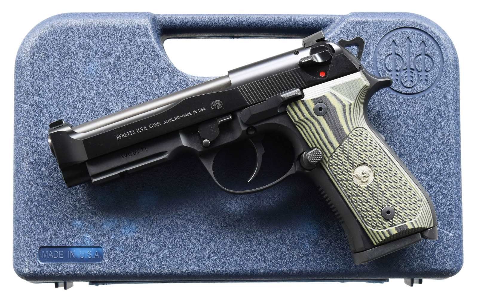 PISTOL. Cal. 9mm Luger. S# WC0271. Bbl. 4 1/2". Tritium white dot front sight. Wilson U-notch rear sight. Beretta 92G modified & improved by Wilson Combat. Ambi decocker that does not function as a manual safety. Matte black finish. Frame has accessory rails. G10 grips w/ Wilson Combat medallions. MAGS: 3-15 rd. UNATTACHED ACCESSORIES: matching numbered factory box w/ hardcase, manual & warranty card. CONDITION: all aspects rate very good plus or better w/ some light handling & operational wear. (24-1682/MJC). MODERN. $700-1000.