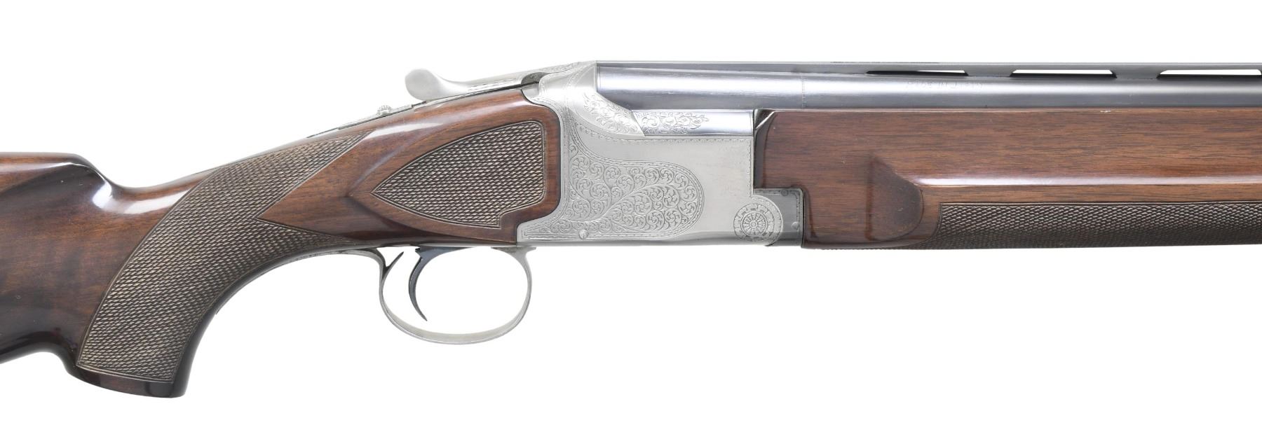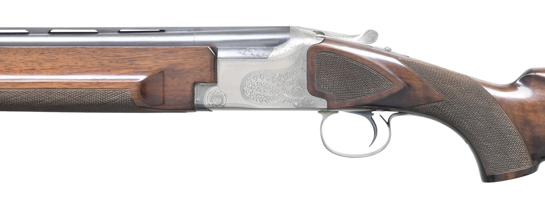 Cal. 12 ga. 2 3/4". S# PK188714 Bbls. 32" vent rib w/ fixed Mod & Full chokes. White target front sight & white mid bead. Coin finished boxlock action has scroll ornamentation. SST. Ejectors. Forend & pistol grip Monte Carlo stock of gloss finished walnut have cut checkering. LOP. 14 3/8" over original Winchester black pad. Weight: 7 lbs. 14.4 ozs. CONDITION: Over 98% wood & metal finish showing small dark spots on bottom of receiver. Trigger guard fit is partially proud to the wood. Very good bright bores. (25-777/DS). MODERN. $1000.-1500.