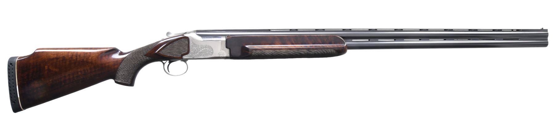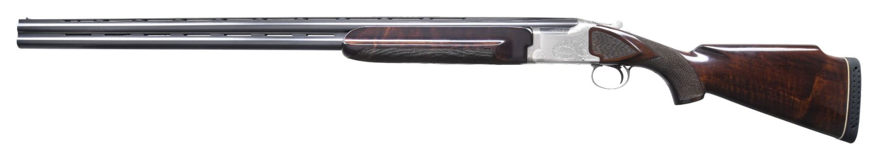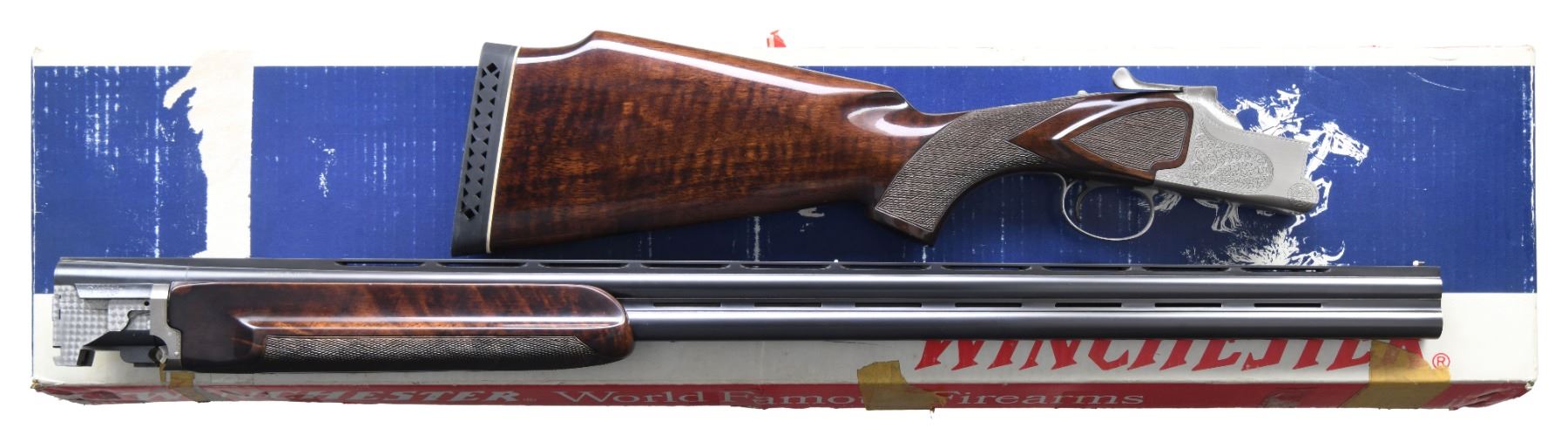 Cal. 12 ga. 2 3/4". S# PK393197. Bbl. 32" w/ 5/8" vent rib & ventilated side ribs. Fixed Imp Mod & Full chokes. White target front sight w/ white mid bead. Satin finished boxlock action w/ scroll ornamentation having a pigeon on the floorplate. Checkered SST. Ejectors. Forearm & pistol grip Monte Carlo of gloss finished walnut w/ hand checkering. 14 3/8" over original black ventilated pad. DAC: 1 1/2". Drop at Monte Carlo: 1 3/8". DAH: 2 1/8". Neutral cast. WEIGHT: 8 lbs, 3.6 oz. UNATTACHED ACCESSORIES: original red, white & blue box containing instructions, hang-tag, purchase card & hunter's pocket guide. Box has torn corners. CONDITION: near new, retaining nearly all wood & metal finish. Action has stiff operation from age hardened grease. Bright near excellent bores. (25-771/DS). MODERN. $1,200-1,800.