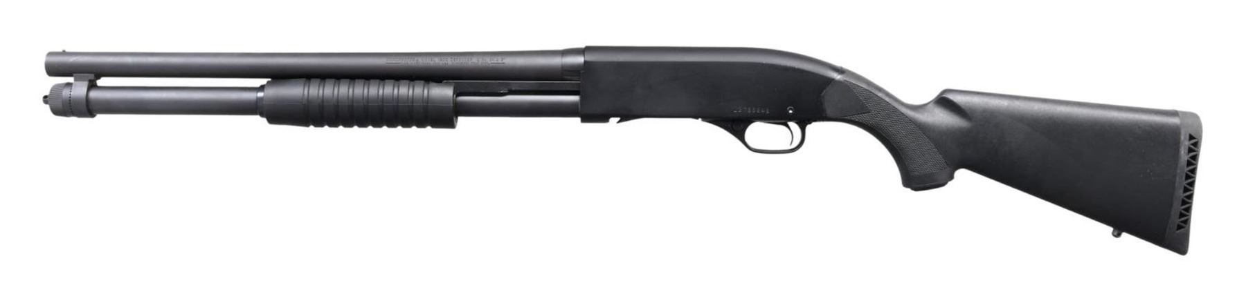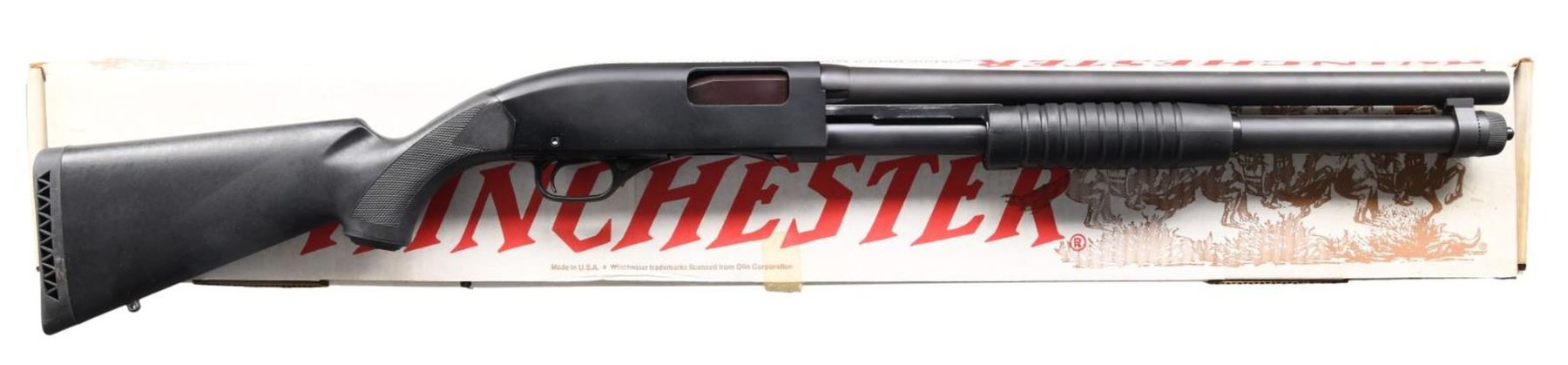 Cal. 12 ga. 2 3/4" & 3". S# L2788248. Bbl. 18 1/2" plain with cyl. bore and brass bead. Full-length extension mag. Matte black metal finish. Corrugated forearm and pistol grip injection-molded stock with a Winchester black ventilated pad. UNATTACHED ACCESSORIES: matching numbered box. CONDITION: near excellent, retaining nearly all of its original finish. Bright, near excellent bore. PROVENANCE: from the Working Reference Collection of Military Arms Instructor, Master Sergeant Vincent Pestilli. (23-7589/DS). MODERN. $300-500.