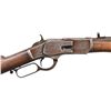 ACTION RIFLE. Cal. 44 WCF. S# 10125. Bbl. 24" octagon of heavyweight measuring 13/16" across flats. Sporting front sight, blade is replaced by a piece of rock. Replacement full buckhorn elevator adj. strap type rear sight. Action features a large oval thumb-print mortised dust cover, bushed firing pin, early style lever latch & set trigger. Full length mag. Walnut forearm & straight grip stock w/ crescent steel buttplate. Mfg. 1875. WEIGHT: 8 lbs, 11 oz. CONDITION: metal finish has faded to a mottled gray brown. Sanded stocks have a dark weathered appearance w/ dents, scratches & marks. Stock has a small crack extending from right side of action. Forearm is chipped along bbl. channel. Action & trigger function well. Bore is dark, lightly pitted in the grooves & retains strong rifling. PROVENANCE: From the lifelong collection of Jerry Senter. (01-24823/DS). ANTIQUE. $2,000-2,750.