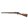 Cal. 44 WCF (44-40). S# 315151B. Bbl. 20" carbine style w/ barleycorn front sight, rear sight has broken leaf. Full length mag. Saddle ring is removed from left side of action. Original band fastened walnut forearm. Replacement walnut stock, using the original trapdoor carbine buttplate. Mfg. 1889. CONDITION: metal has dark brown appearance w/ scattered pitting & light corrosion. Action shows heavy wear w/ weak lever retaining spring. Forearm band screw is missing. Action has open holes for saddle ring staples. Forearm has added finish. Stained replacement stock shows wood filler around buttplate w/ a crack extended from left side of action. Dark pitted bore w/ partially intact rifling. (01-20426/DS). ANTIQUE. $500-700.