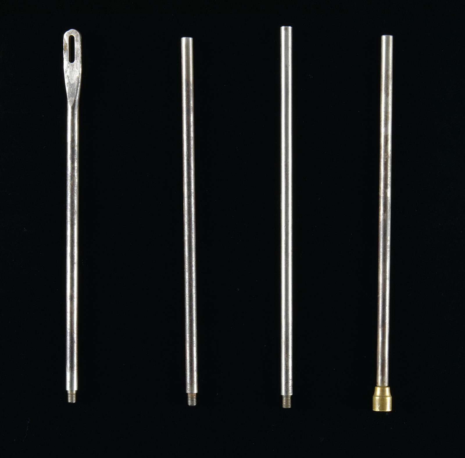 4 Piece steel rod w/ slotted tip having brass patch jag on opposite end. Overall length: 28 1/2". CONDITION: very good showing intermittent gray & brown patina appearance. (02-16086/DS). $300-500.