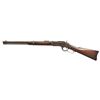 Cal. 44 WCF (44-40). S# 162048A. Bbl. 20" with blade front sight and carbine leaf rear sight. Full length tubular mag. Action has saddle ring on left side. Blue finish with case colored hammer and lever. Walnut forearm and stock with steel carbine trapdoor buttplate. 1884 mfg. UNATTACHED ACCESSORIES: four piece steel cleaning rod held in stock trapdoor compartment. CONDITION: metal has largely faded to a pleasing brown patina retaining traces of blue in protected areas with scattered spots of corrosion. Hammer and lever retain faint traces of case colors. Unsanded wood has light coat of added finish over scratches, dents and marks. Sound action. Bore retains intact rifling showing scattered spots of pitting. (01-20195/DS). ANTIQUE. $1,500-2,250.