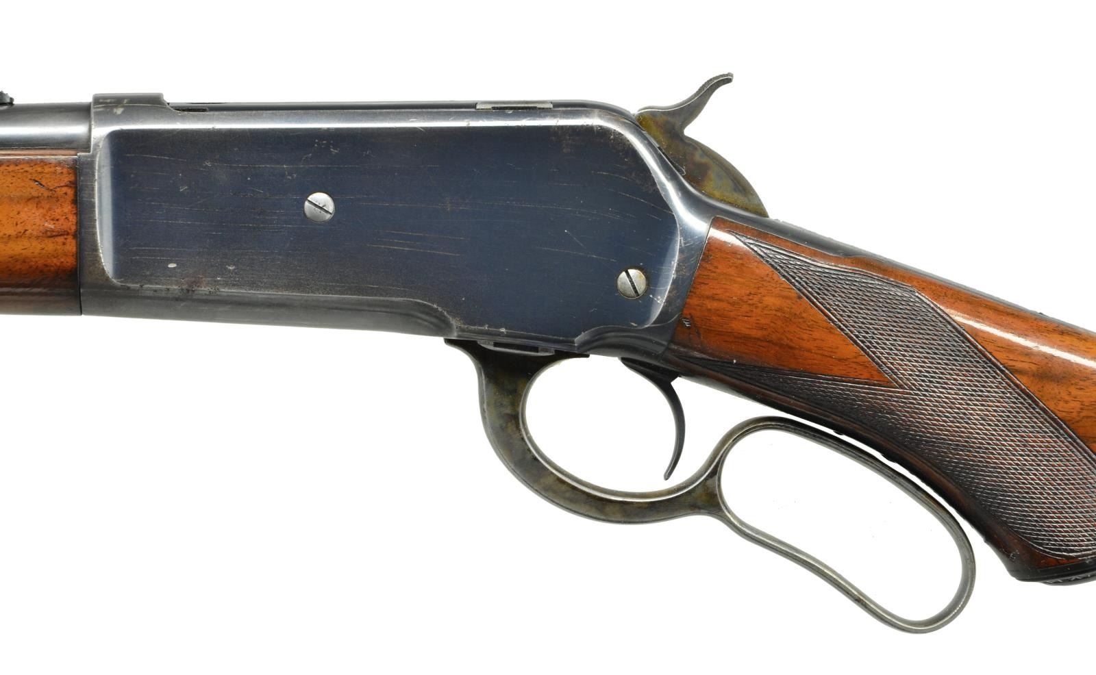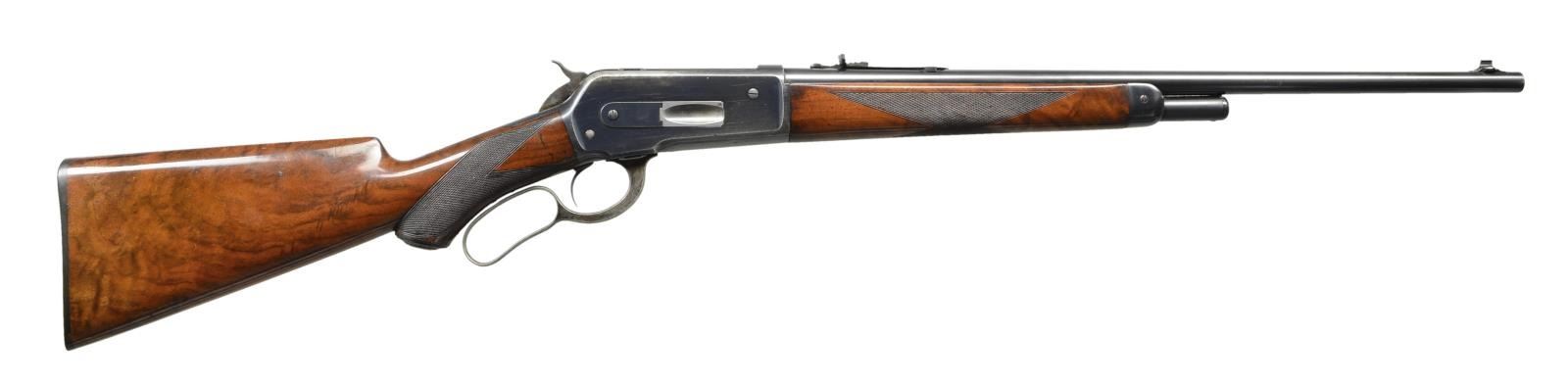 ACTION RIFLE. Cal. 45-70. S# 128970. Bbl. 22" extra lightweight tapered rnd. Pedestal mounted Lyman front sight w/ Winchester flat top V notch sporting rear sight. 1/2 Length tubular mag. Blue finish w/ case colored hammer & lever. Forearm & hard rubber capped pistol grip stock of XX grade fancy walnut features style "H" factory checkering & hard rubber shotgun buttplate. Lower inside tang is marked w/ assembly no. "210" followed by "XX" grade marking. Top tang stock channel is marked w/ matching "210". UNATTACHED ACCESSORIES: Cody Firearms Museum Record Check confirming the configuration of the rifle & further stating date shipped Aug. 15th, 1904 & order number 224457. CONDITION: bbl. & action retain over 80% original blue showing a light edge & carry wear w/ scattered sm. spots of corrosion & light scratches. Hammer & lever retain 70% case colors on their sides. Original wood finish shows light wear w/ scattered scratches & marks. Bright bore w/ strong rifling. (22-9/DS). CURIO. $5,000-7,000.
