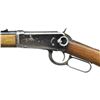 Cal. 30 WCF. S# 484124. Bbls. 20". Full length mags. Saddle ring on left side of actions. Pinned German silver blade front sight w/ express rear sight. Carbine gumwood forearm & later vintage straight grip stock w/ horizontal grooved steel buttplate. 1909 Mfg. CONDITION: 40% dull fading blue showing areas of wear w/ scratches & spots of corrosion. Wood has worn & peeling finish showing numerous scratches, dents & marks. Tang screw is improper replacement w/ added washer. Good mechanics. Bore is generally bright w/ strong rifling showing scattered spots of pitting. (21-4361/DS). CURIO. $300-400.