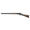 Cal. 38 WCF. S# 414141B. Bbl. 24" octagon with sporting sights. Full length mag. Walnut stock and forearm with crescent steel buttplate. 1892 mfg. CONDITION: metal shows a dull reblued finish over unpolished metal retaining dents, scratches, pitting, and marks. Replacement dust cover. Wood shows heavy wear with numerous dents and marks having chips and cracks around action. Functioning action. Bore retains intact rifling. (01-22037/DS). ANTIQUE. $700-1,000.