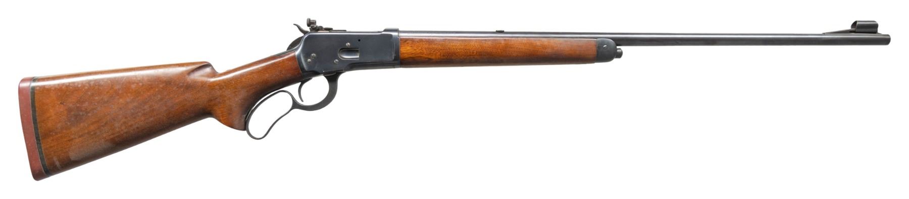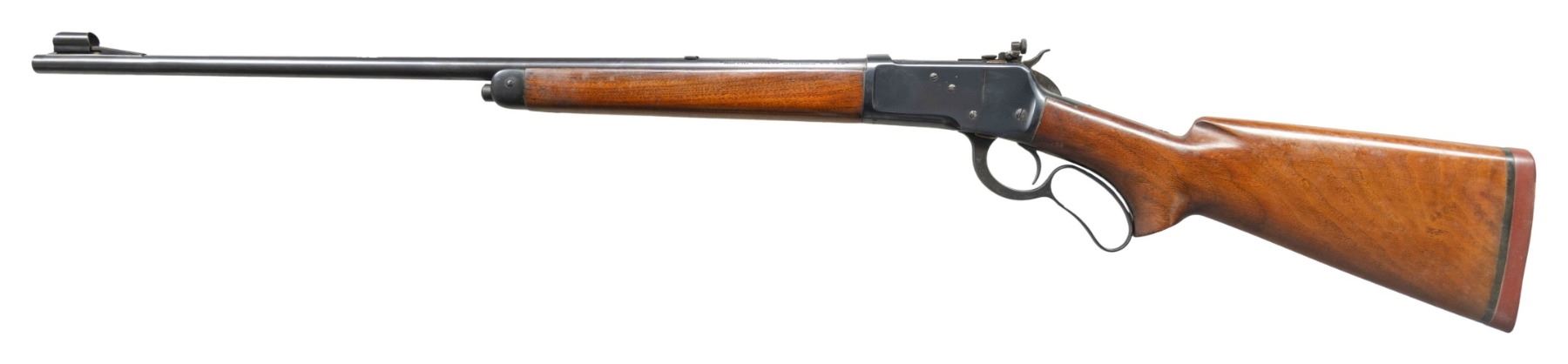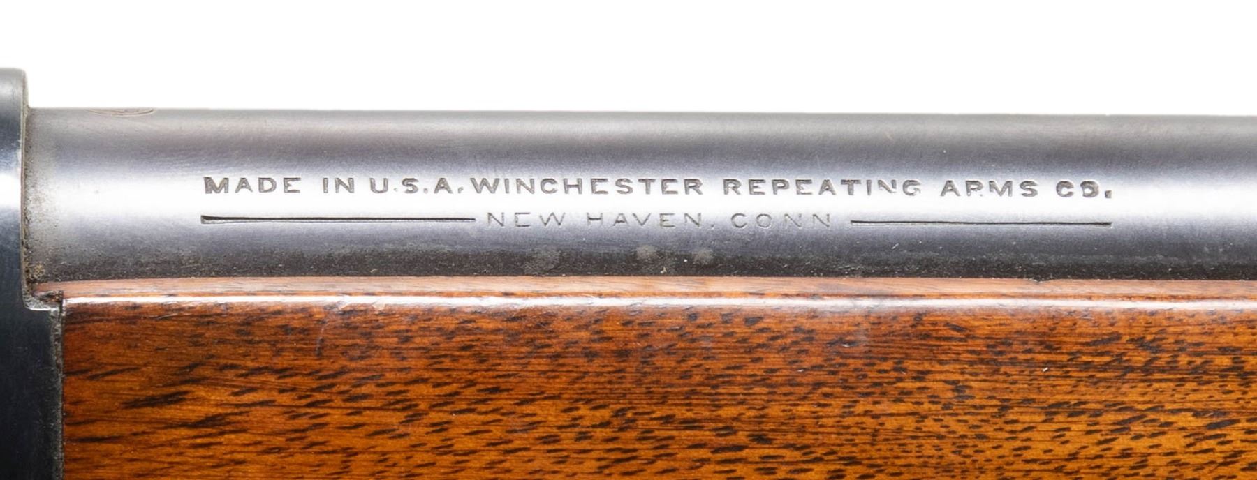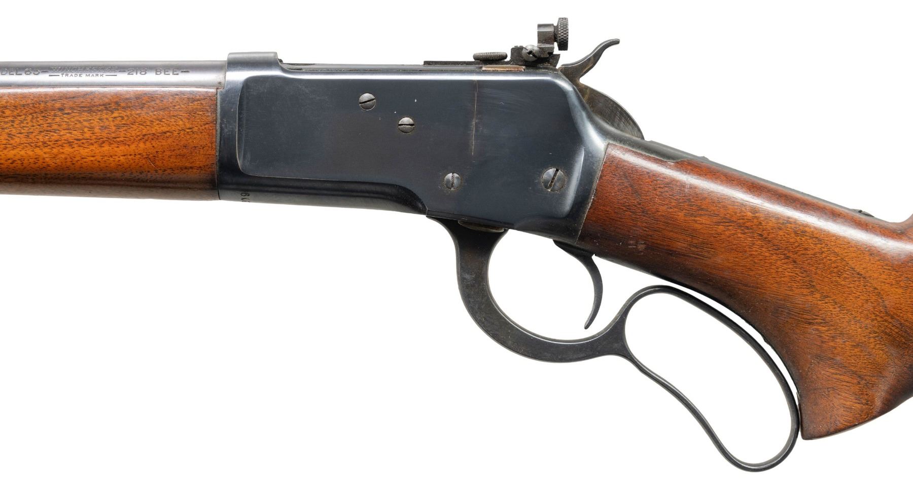 Cal. 218 Bee. S# 1006209. Bbl. 24" with hooded stippled ramp beaded front sight and factory plugged dovetail. Lyman 98A rear bolt sight. Uncheckered pistol grip walnut stock with added Winchester red rubber recoil pad and steel forearm cap. CONDITION: overall very fine original metal finish with some very minor handling marks. Stock was lightly sanded and refinished. Bright bore with sharp rifling. (25-1276/ZAL). CURIO. $1,200-1,800.