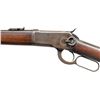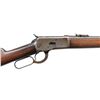 Cal. 25-20 WCF. S# 937084. Mfg. 1925. Bbl. 20" with pinned carbine blade front sight (replacement blade). Carbine rear sight. Bbl marked "-Model 92 W- Winchester-25-20 W.C.F.- / -Trademark-". Uncheckered straight grip walnut carbine stock set held with single barrel band and terminated with a smooth steel carbine buttplate. CONDITION: overall fair with bbl finish thinning to approx 30% coverage with the exposed metal finish turning to a light grey patina and carrying minor handling marks and light scratches. Receiver finish only remains in the protected area with approx 15% coverage with the predominance in the upper tang area behind the hammer. Loading gate retains 50% of its blued finish. Crisp markings. The stock set is good and caught a light sanding and refinish showing some scratches and scattered light handling marks. Bore shows some light frosting, mild pitting and distinct sharp rifling. (25-1321/ZAL). CURIO. $1,000-1,500.