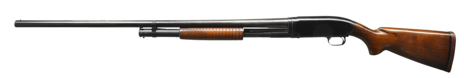 Cal. 12 Ga. S# 905143. Bbl. 32” round w/ front bead, 3” chamber & choked “FULL”. Matching S#s, blued finish, 18 groove forend & smooth pistol grip buttstock w/ factory Winchester recoil pad & 13 5/8” LOP. CONDITION: Frame appears to be reblued; Bbl. show heavier wear with moderate scratches at the breech end. Freckling & light rust throughout. Stock set has an added coat of finish over scattered dings & dents. Bore is good, fairly bright w/ stubborn residue near the muzzle end. (22-6263/CW). CURIO. $500-700.