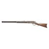 Cal. 45-60. S# 29281. Bbl., round, shortened to 26’’. Sporting front sight w/ added German silver blade. Sporting rear sight is altered to flat top configuration. Full length mag. is shortened to match bbl. length. Walnut forearm & straight grip stock w/ crescent steel trap door buttplate. Mfg. 1882. CONDITION: bbl. & action retain 50% lightly faded blue blending w/ brown patina. Wood shows heavy wear & aged darkening w/ numerous scratches, dents & marks. Lightly pitted bore retains sound rifling. (01-22669/DS). ANTIQUE. $1,500-2,250.