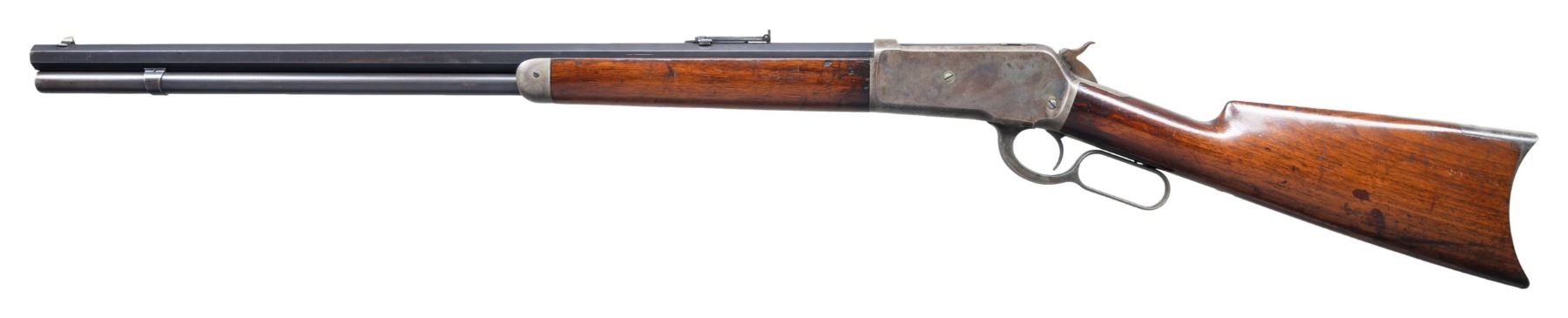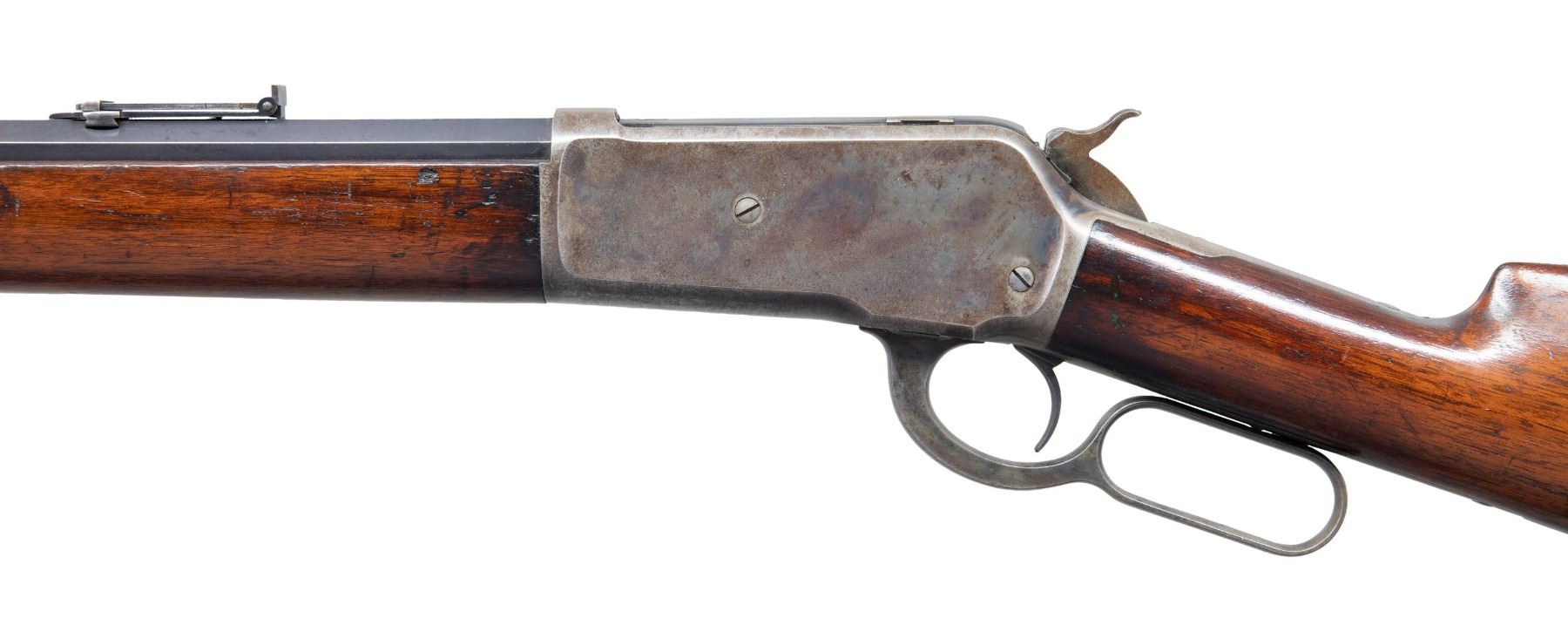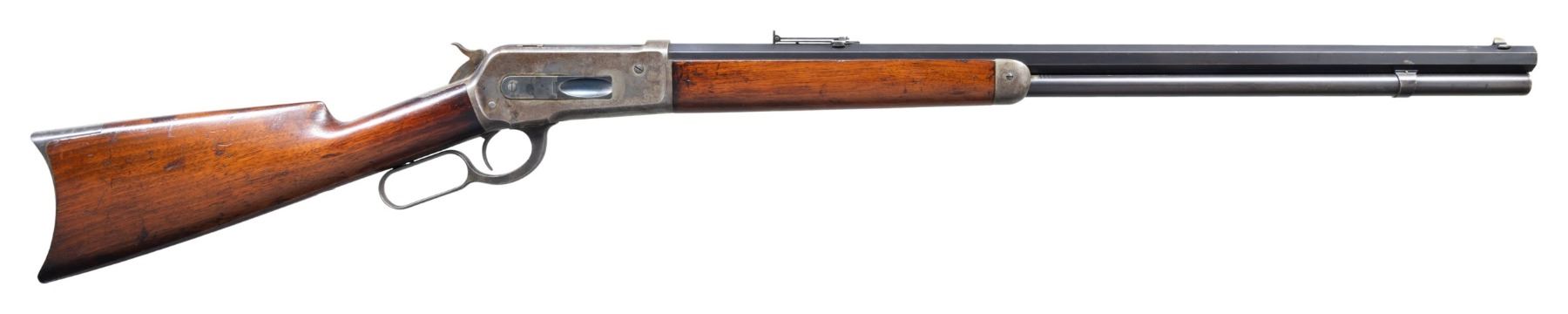 Cal. 45-70. S#. 23405. Bbl. 26" octagon. Sporting front sight w/ graduated leaf rear sight. full length mag. Blue & case colored finish. Walnut forend & straight grip walnut stock w/ crescent steel buttplate. Mfg. 1888. CONDITION: bbl. & mag. tube retain over 80% lightly faded original blue showing slight edge & carry wear w/ some dark spotting. The action has 30% light & fading case colors remaining on sides & in protected areas. Stocks have lightly worn original finish showing scratches, marks & small dents. Lightly pitted bore retains sound rifling. PROVENANCE: The Esteemed Norm Greenberg Collection. (01-27705/DS). ANTIQUE. $3,000-4,500.