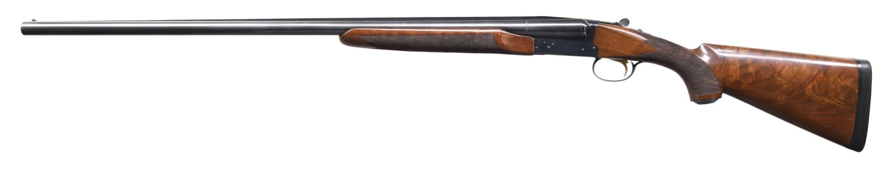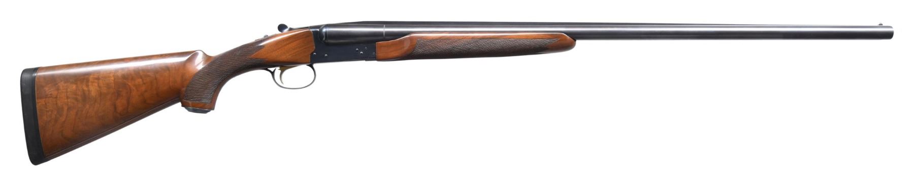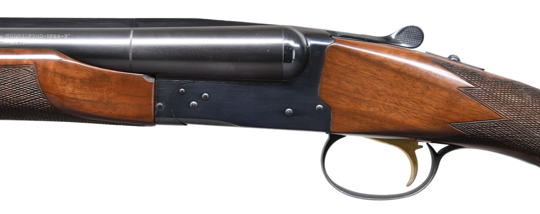Cal. 12 ga. 3". S# HD-74E. Bbls. 30" w/ raised solid rib. Fixed "Duck Full" chokes. White target front sights w/ white mid bead. Blued boxlock action. Gold finished SST. Selective ejectors. Beavertail forearm & steel capped pistol grip stock of gloss finished fancy walnut w/ cut checkering. LOP: 14" over original solid black Winchester pad. Limited edition of 500 mfg. 1984 only. WEIGHT: 7 lbs, 9 oz. CONDITION: over 98% original blue. Trigger retains over 70% finish. Original stock finish shows scattered scratches. Very good bores. (24-4017/DS). MODERN. $2,500-3,500.