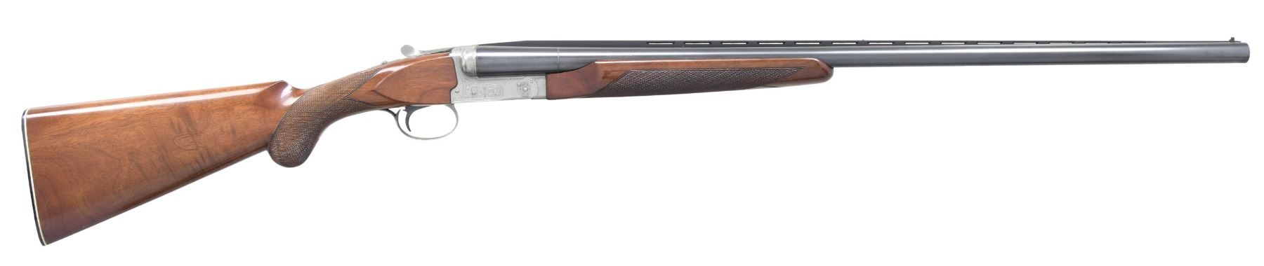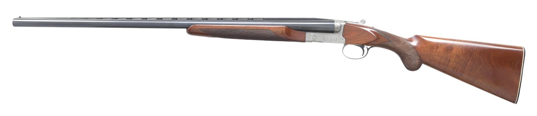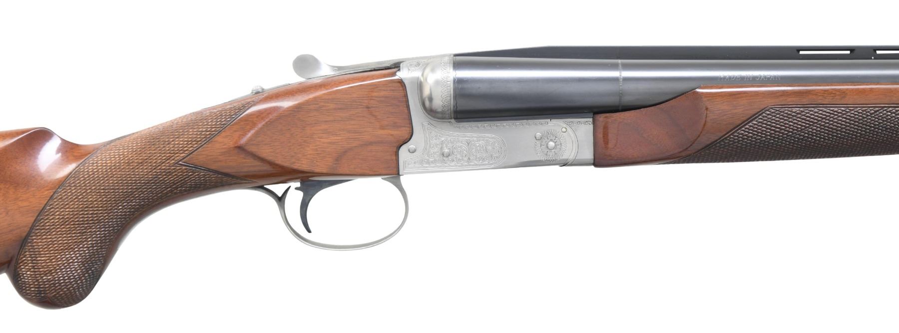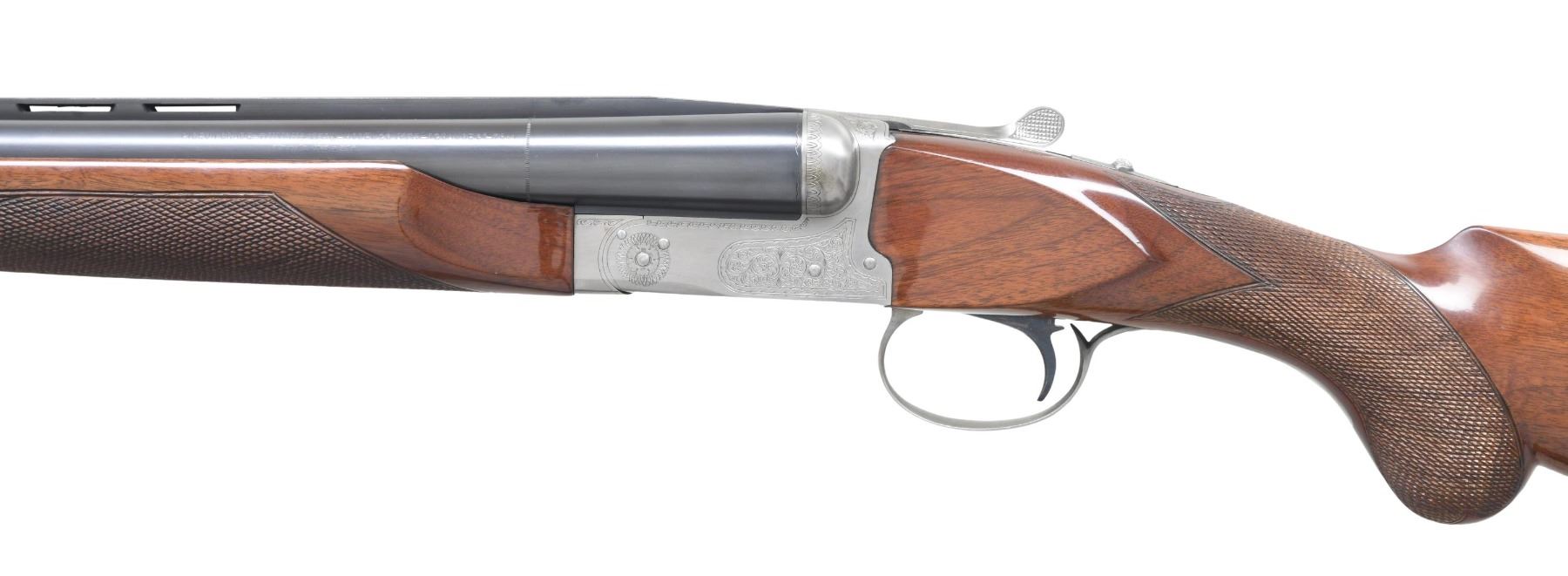 Cal. 12 ga. 3". S# PWK003637. Bbls. 28" vent rib w/ fixed Mod & Full chokes. White target front sight w/ white mid bead. Satin gray finished boxlock action w/ scroll ornamentation. SST. Selective ejectors. Beavertail forearm & round knob stock of gloss finished walnut w/ cut checkering. LOP: 14" over buttplate & white line spacer. UNATTACHED ACCESSORIES: yellow vinyl covered Winchester case. CONDITION: over 98% metal finish. Original stock finish shows light scattered handling marks. Bright near excellent bores. (25-773/DS). MODERN. $1,500-2,000.