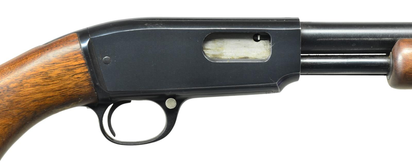 Cal. 22 S, L, LR. S# 258967. Bbl. 24" rnd. w/ original sporting sights. Receiver grooved for tip off scope mts. Tubular mag. Blue finish. Flat bottom grooved forearm & pistol grip walnut stock w/ steel buttplate. 1959 Mfg. CONDITION: 90% lightly worn blue showing edge wear. Original wood finish shows light wear w/ scattered dents, scratches & spots of finish loss. Bright near excellent bore. (21-4338/DS). CURIO. $700-1,000.