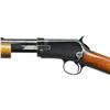 Cal. 22 S, L, LR. S# 147203. Bbl. 23" rnd. w/ sporting sights. Tubular mag. Blue finish. Lg. rnd. grooved forearm & straight grip walnut stock w/ original buttplate. Mfg. 1942. CONDITION: 90% blue showing slide & edge wear. Forearm shows spots of finish wear & handling marks. Stock has worn finish showing scattered scratches & marks. Bore is bright w/ strong rifling. (21-4147/DS). CURIO. $500-800.