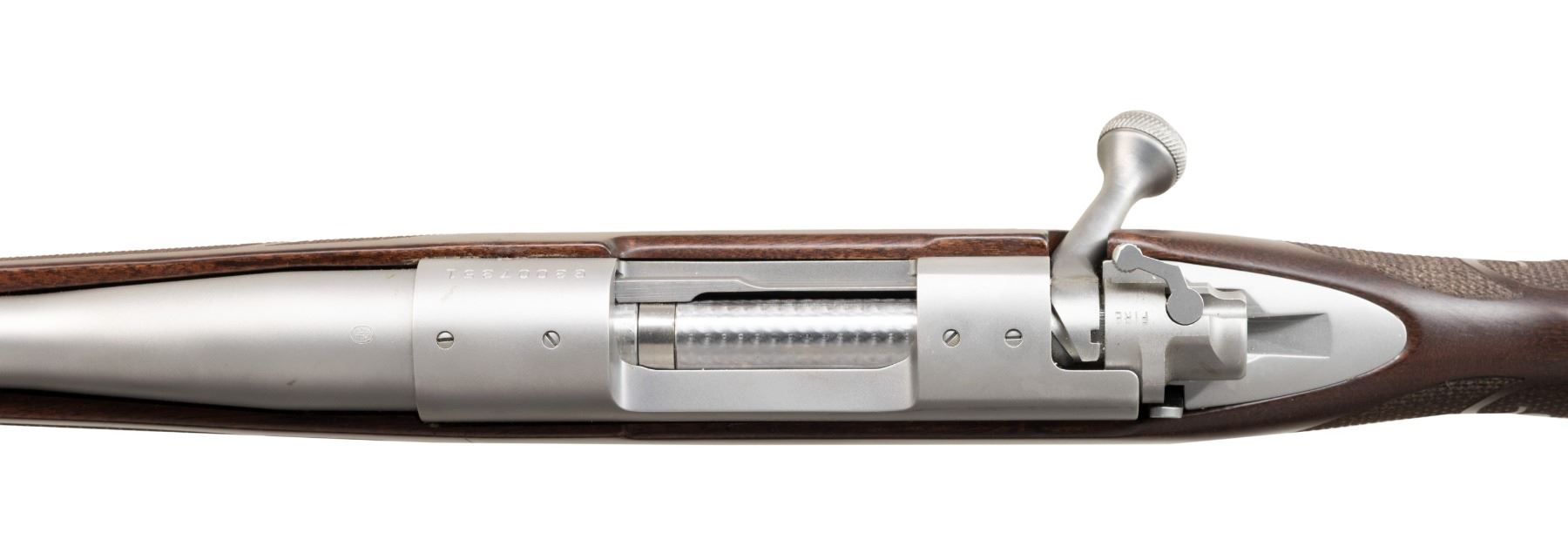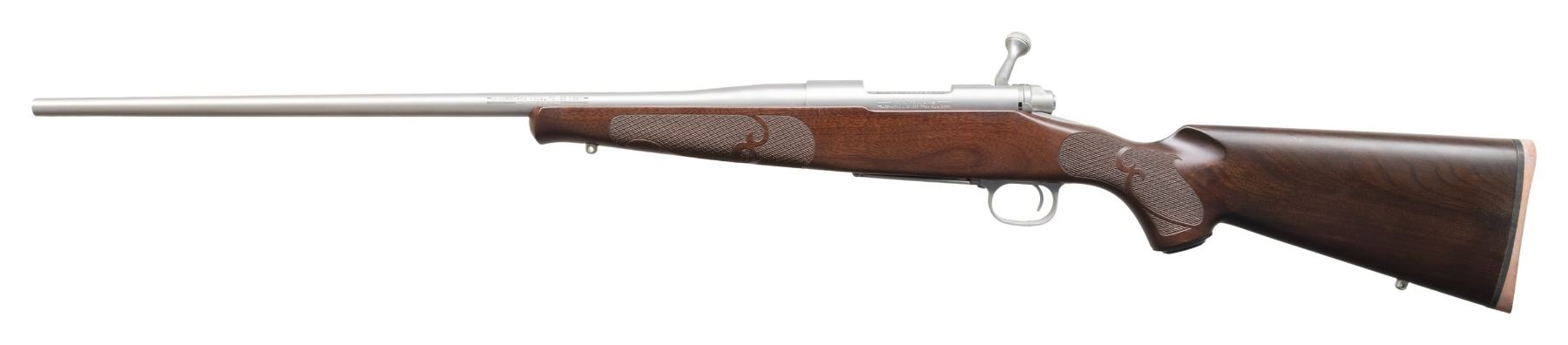 Cal. 25 WSSM. S# G3007351. Bbl. 22". Receiver is factory drilled & tapped for scope mounting. Featherweight Stainless Model 70 rifle. Checkered pistol grip walnut stock with bottom mounted sling studs & factory recoil pad. LOP: 13 1/2". UNATTACHED ACCESSORIES: matching numbered factory cardboard box with trigger lock, manual & paperwork. CONDITION: all aspects near excellent with factory hang tags present on trigger guard. (24-3267/MJC). MODERN. $500-900.