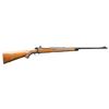 BOLT ACTION RIFLE. Cal. 257 Roberts. S# 62348. Bbl. 24", bottom is dated "47". Lyman 48WJS receiver sight, filler in rear dovetail with a gold bead front sight. Action has cloverleaf tang. Bolt has transition style safety, claw extractor with partially visible serial number on bottom. Floorplate is marked "SUPER GRADE". Straight comb cheekpiece walnut sporter stock. Features include black forearm tip, hard rubber grip cap, Super Grade swivels, checkered buttplate and Super Grade style wraparound checkering. Mfg. 1947. CONDITION: over 95% original blue. Wood has lightly worn finish and checkering with spots of dark staining around buttplate. Bright near excellent bore. (22-3315/DS). CURIO. $4,500-6,500.