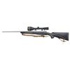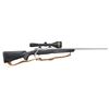 Cal. 25 WSSM. S# G2553598. Bbl. 22". Matte stainless steel w/ no provisions for sights. Leupold VX L 4.5-14x50mm w/ range finding duplex reticle & clear optics. Bolt body is jeweled, black synthetic stock w/ oval dot textured gripping surfaces on pistol grip & forend. Sling swivels hold a commercial leather sling. CONDITION: rifle shows light use only w/ some sticky residue on the recoil pad & fine to light operational marks. Bore is very good w/ strong rifling. (22-5954/CW). MODERN. $800-1,200.