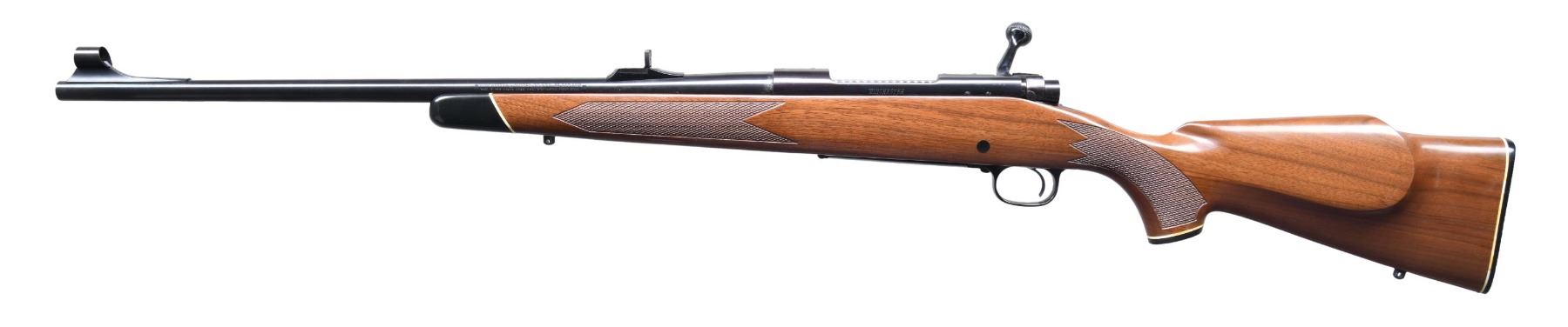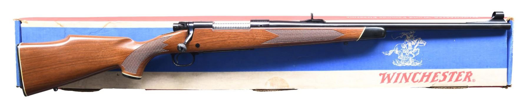 Cal. 22/250 Rem. S#. G1356245. Bbl. 22". Hooded ramp bead front w/ folding leaf rear sight. Push feed action has jeweled bolt body, 3 position safety & hinged floorplate. Gloss finished Monte Carlo cheekpiece walnut stock has cut checkering & swivel bases. Black forend tip, grip cap & plastic buttplate have white line spacers. Mfg. 1978. UNATTACHED ACC: original box containing; instructions, hang tag, purchase card, service center list & Hunter's Pocket Guide. Box shows some water staining. CONDITION: as new, appears unfired. Near excellent bore. (25-794/DS). MODERN. $700-1100